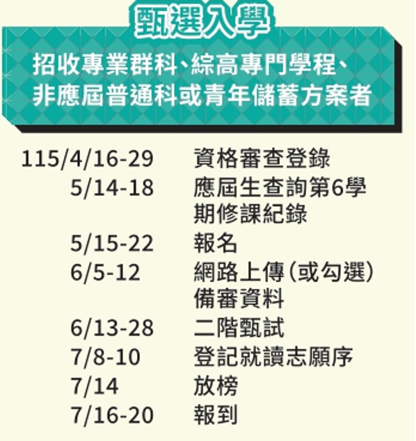 115學年度【甄選入學】招生重要日程表